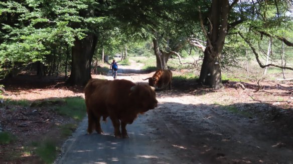 Schotse Hooglander op het fietspad