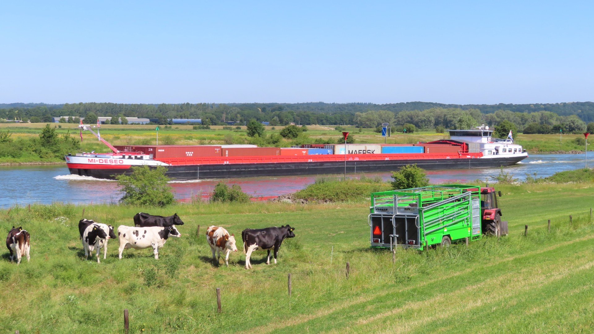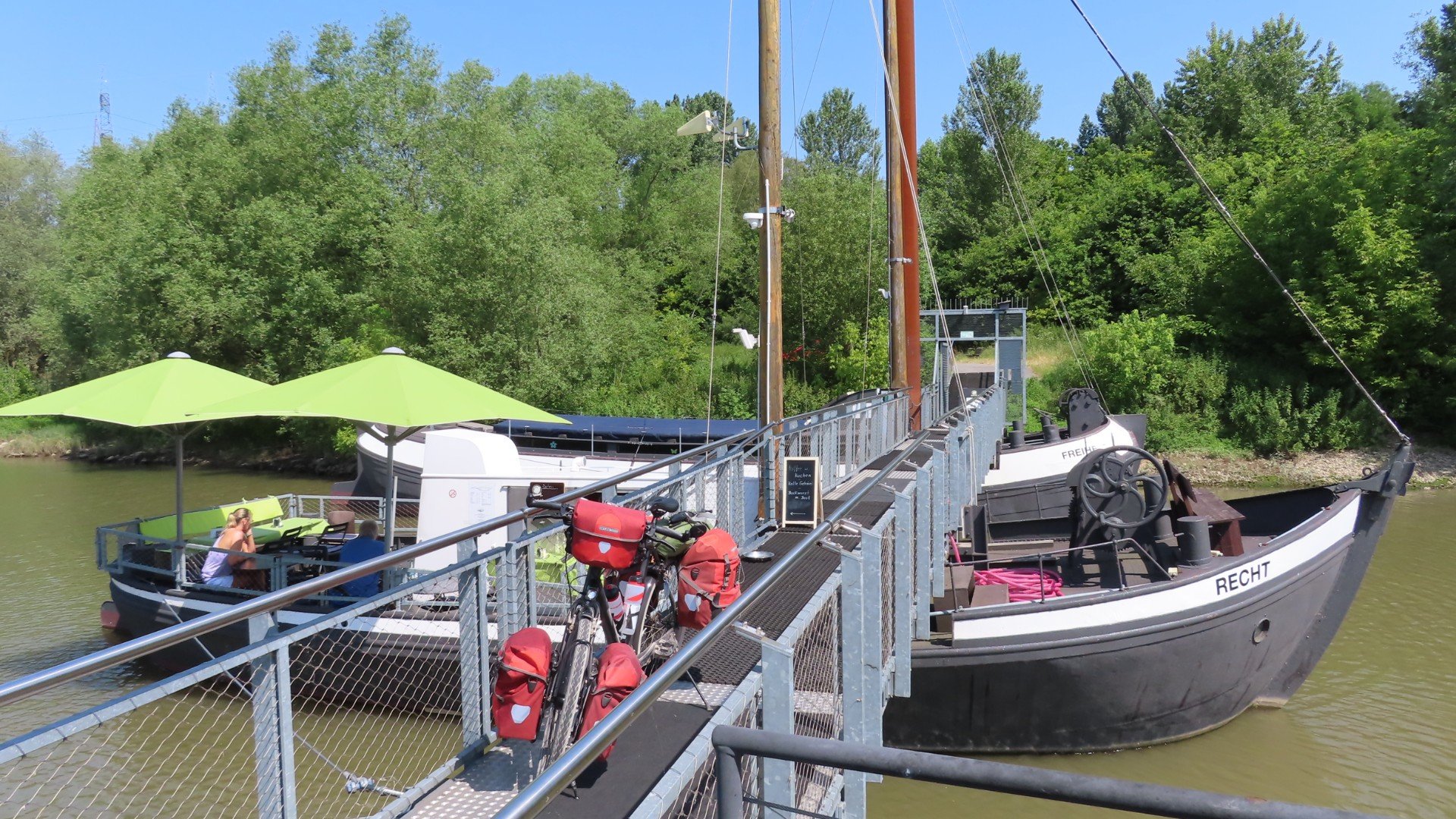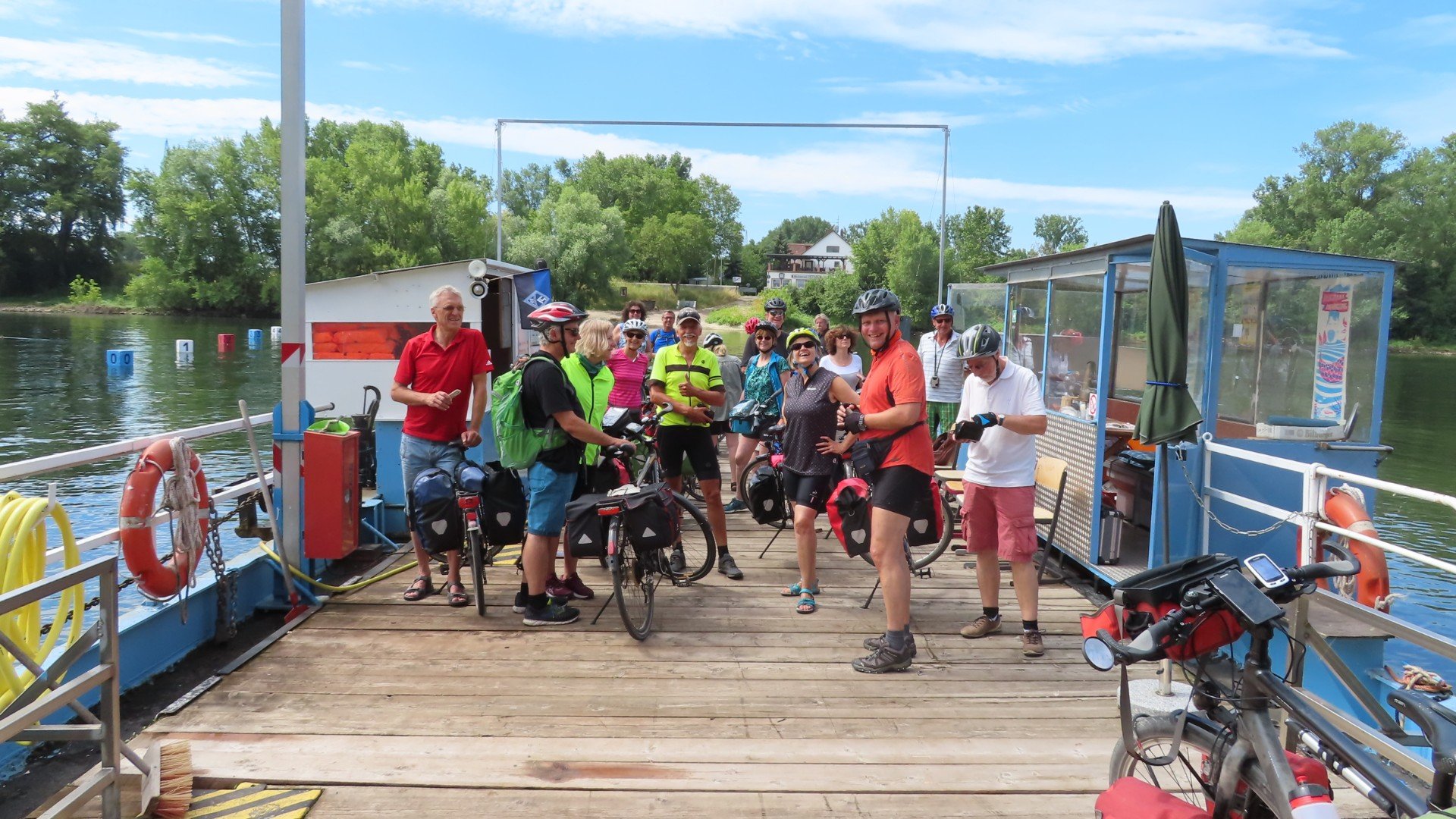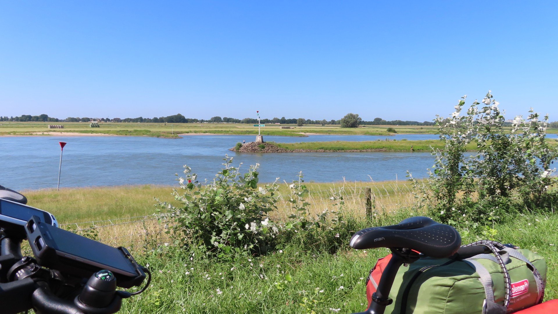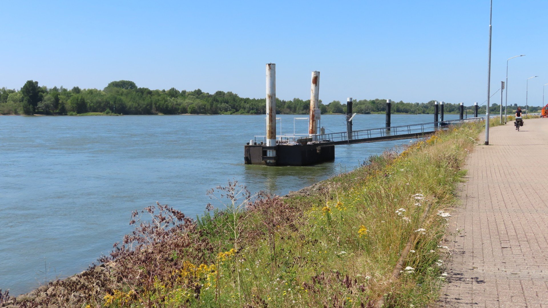 Vertrek om 10:00 uurVeerman Richard (Rheden) vaart vandaagVeerpontje RhedenLangs de IJssel, over de dijk, richting WestervoortWestervoort: Oversteek naar de bevrijding (12 April 1945)Westervoort: Splitsing Rijn en IJsselLunchtijdGroessen: De mammoet van GroessenEurovelo-15. De route wordt aangegevenDe laatste Nederlandse supermarktDe kade in TolkamerTolkamerNach 45km und wir sind schon in DeutslandCampingplatz Brahmberg in Emmerich