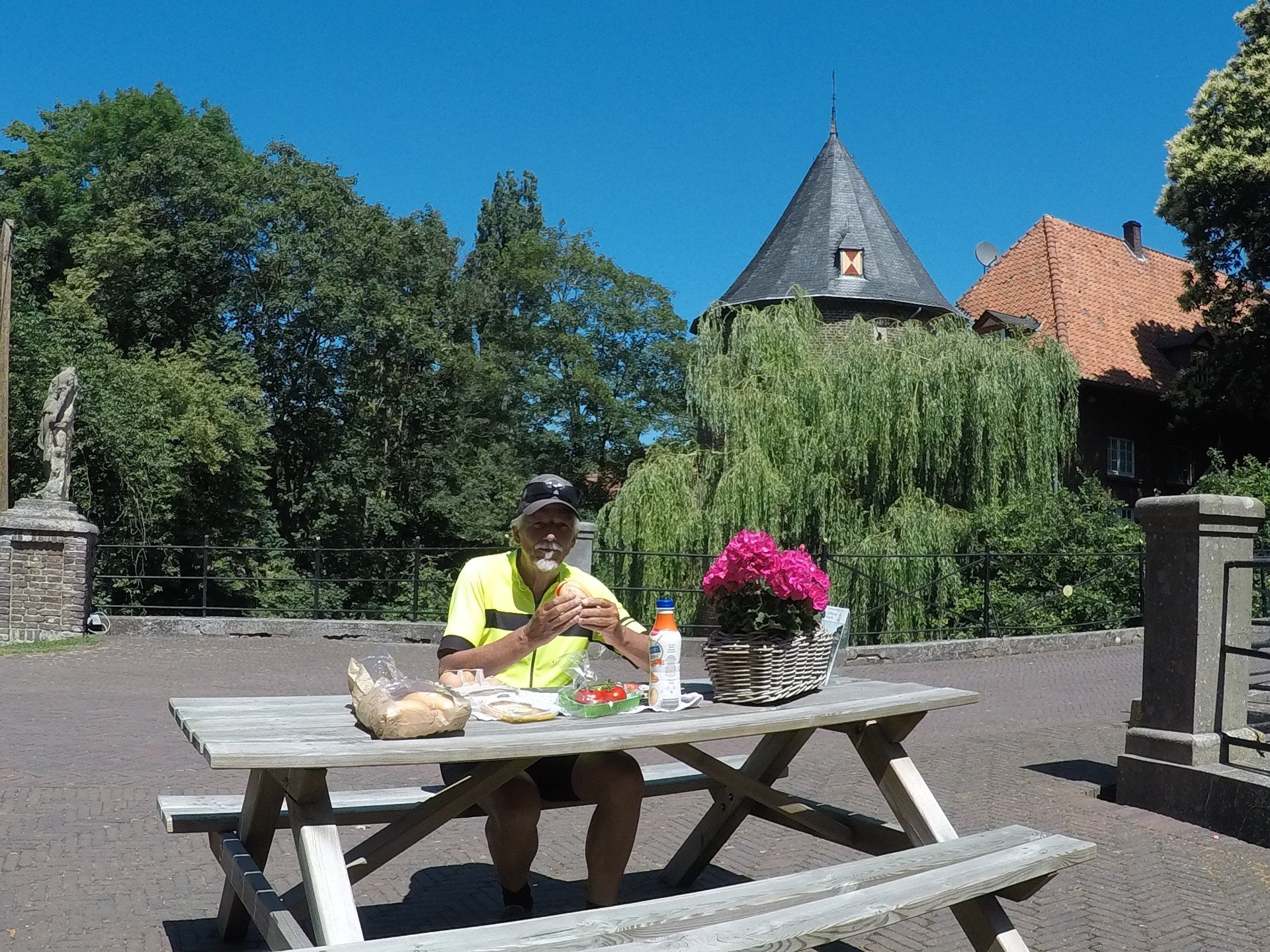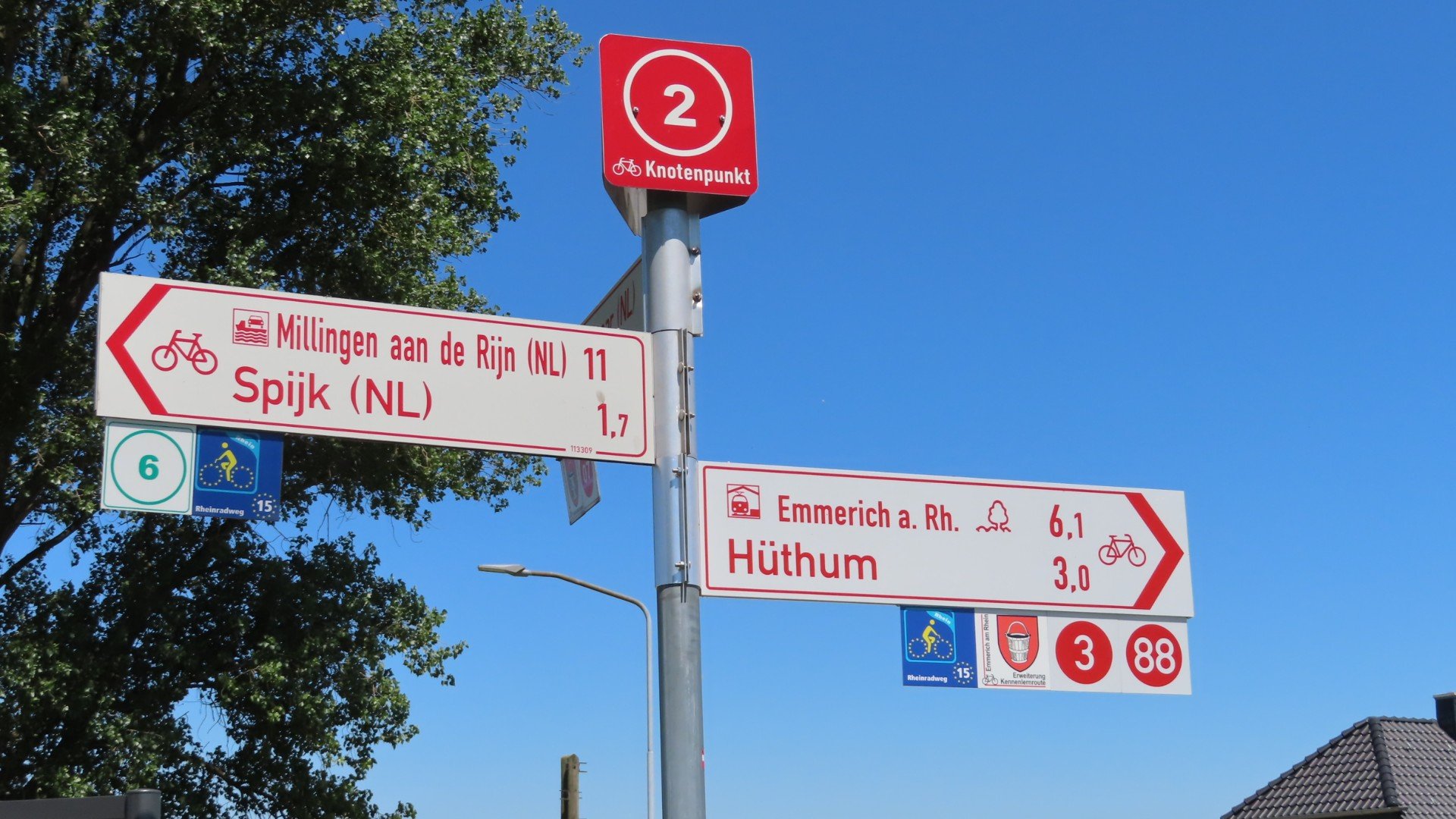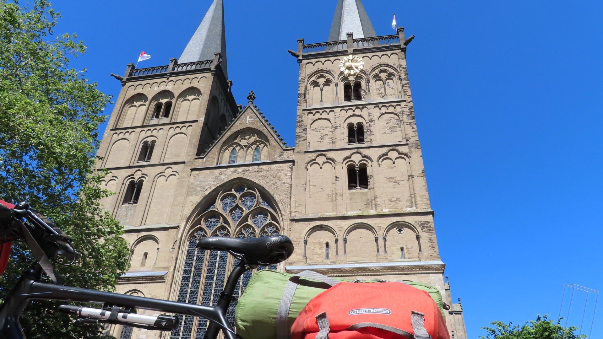 Emmerich: St.MartinikerkEmmerich: Galerie Haus im ParkBij hoogwater andere fietsroutePas getrouwd. Ergens onderwegSchloss HuethLunch bij Schloss HuethRess: RijnpromenadeWachten op veerpont (Rees – Reeserschanz)Langs de RijnXanten: St. ViktorkerkXanten: Gotisches HausXanten: Klever TorAvondetenOp de camping