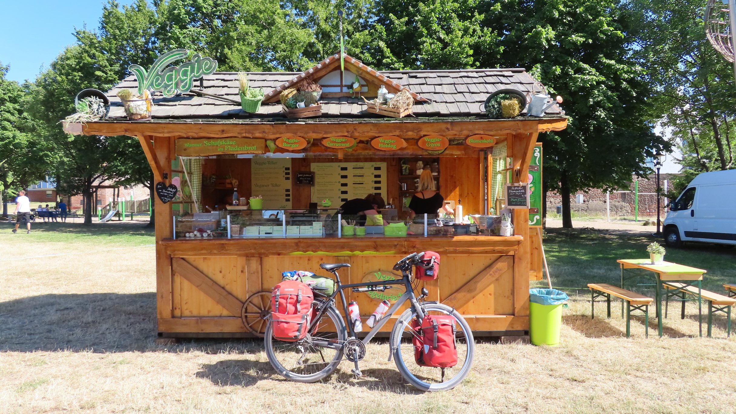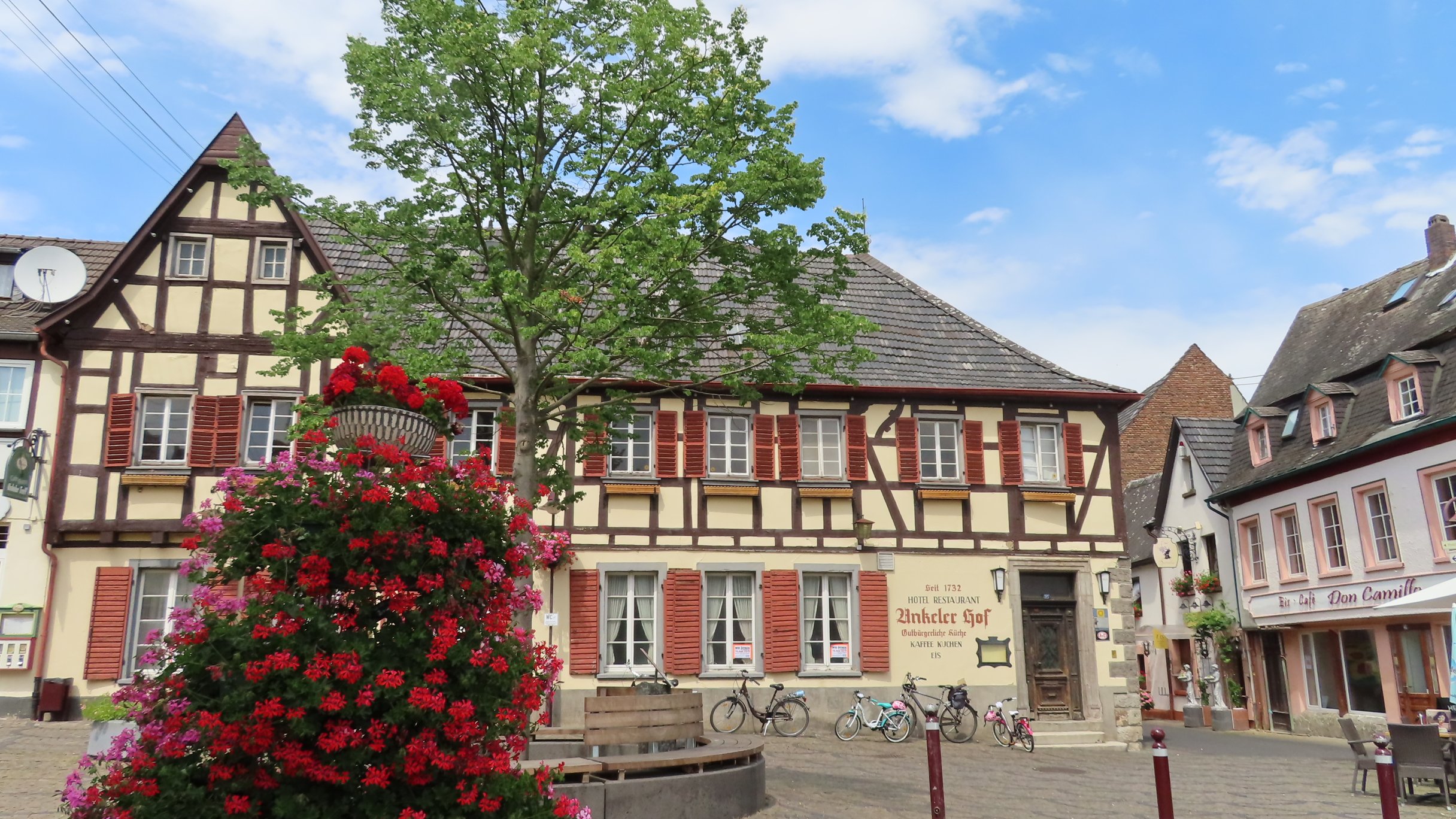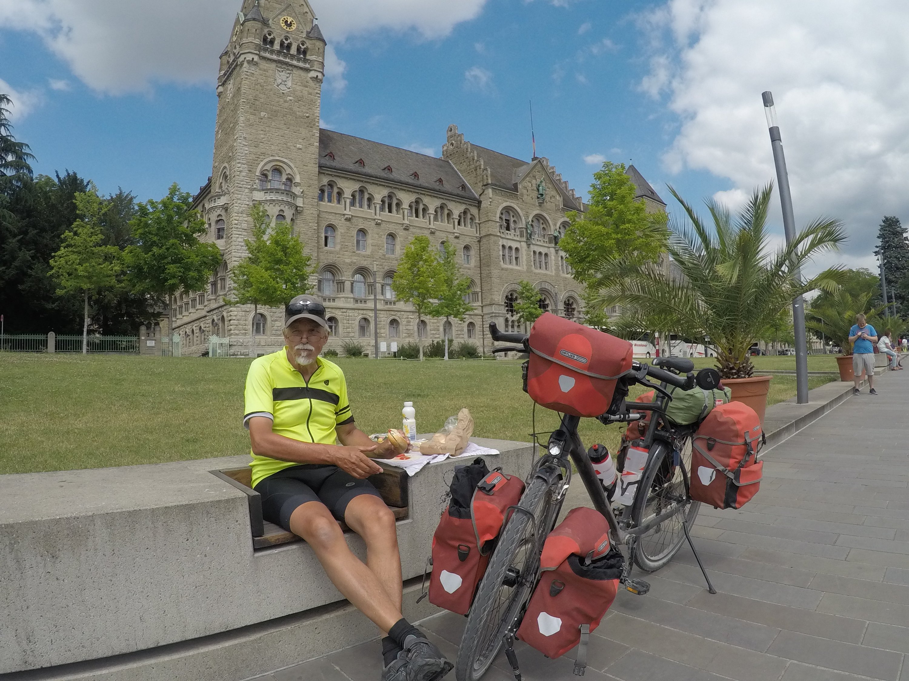 Emmerich: St.MartinikerkEmmerich: Galerie Haus im ParkBij hoogwater andere fietsroutePas getrouwd. Ergens onderwegSchloss HuethLunch bij Schloss HuethRess: RijnpromenadeWachten op veerpont (Rees – Reeserschanz)Langs de RijnXanten: St. ViktorkerkXanten: Gotisches HausXanten: Klever TorAvondetenOp de camping