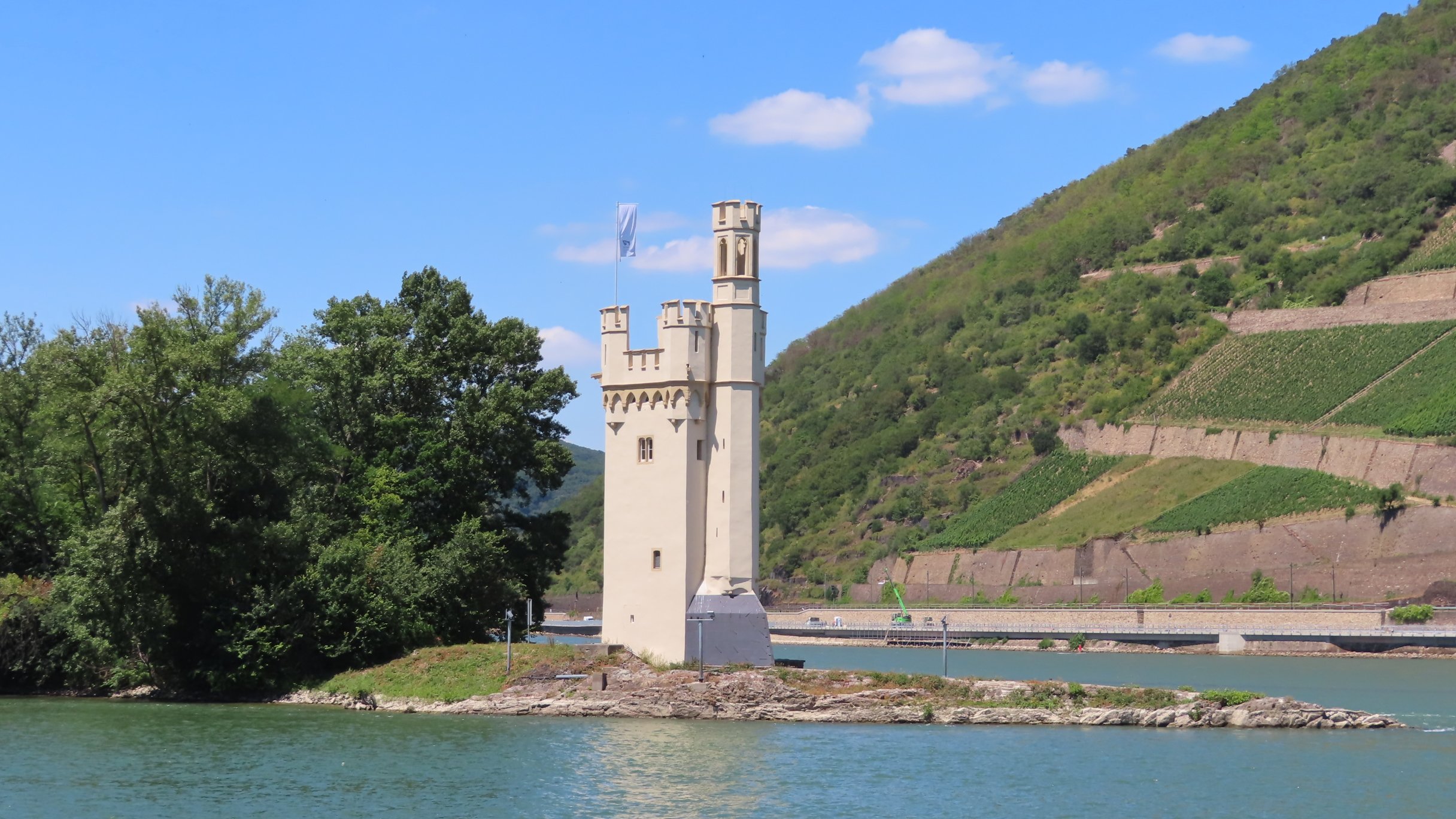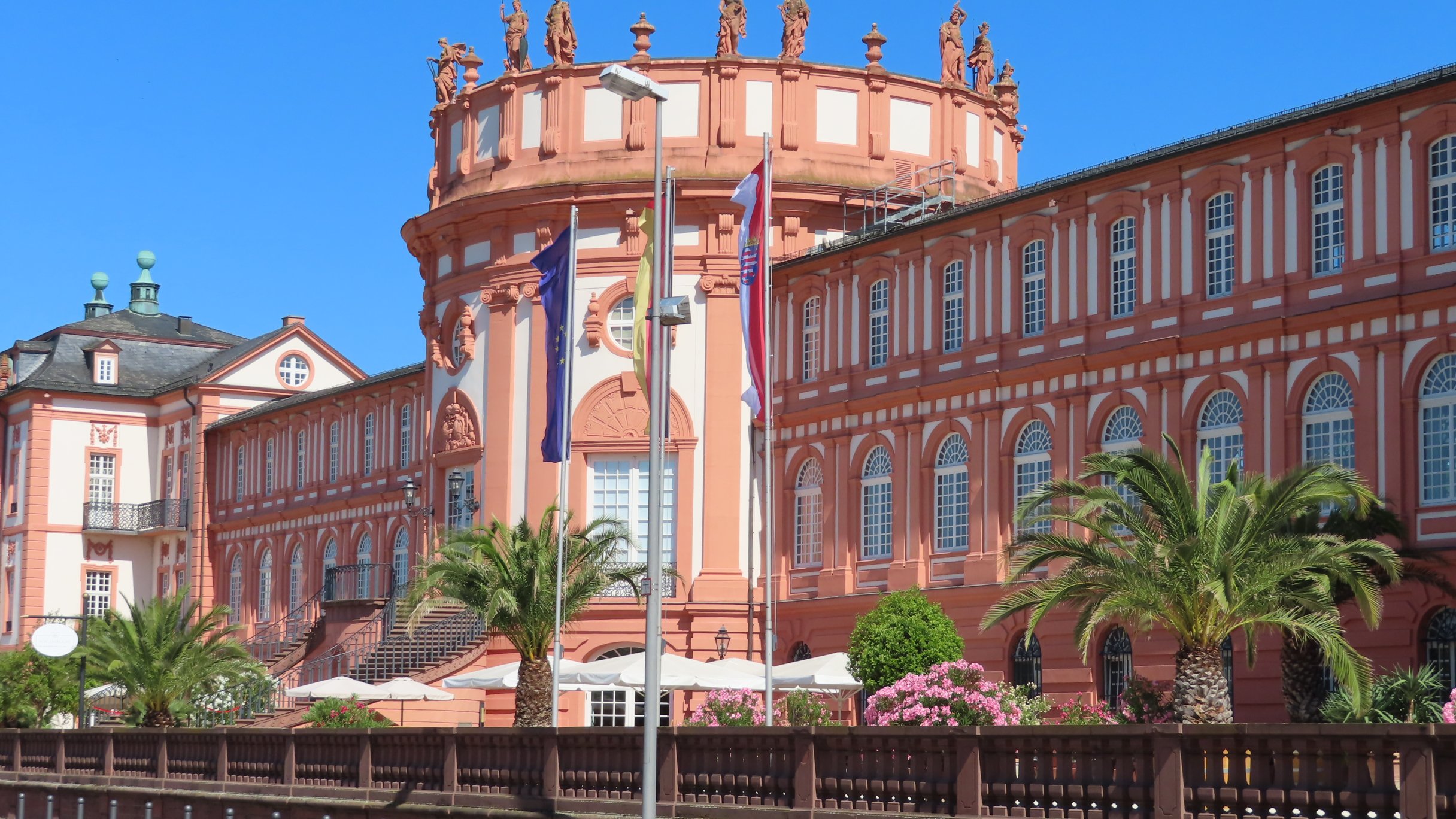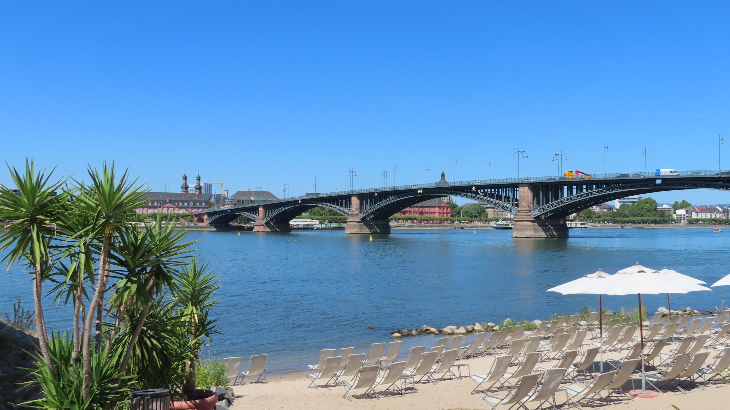 Eltville am Rhein: In de verte de Kurfurstliche BurgEltville am Rhein: Kurfurstliche BurgSchierstein: Dyckerhoff BruckeBiebrich: Schloss BiebrichMainz aan de overkant van de RijnMainz: Theodor Heuss Brucke