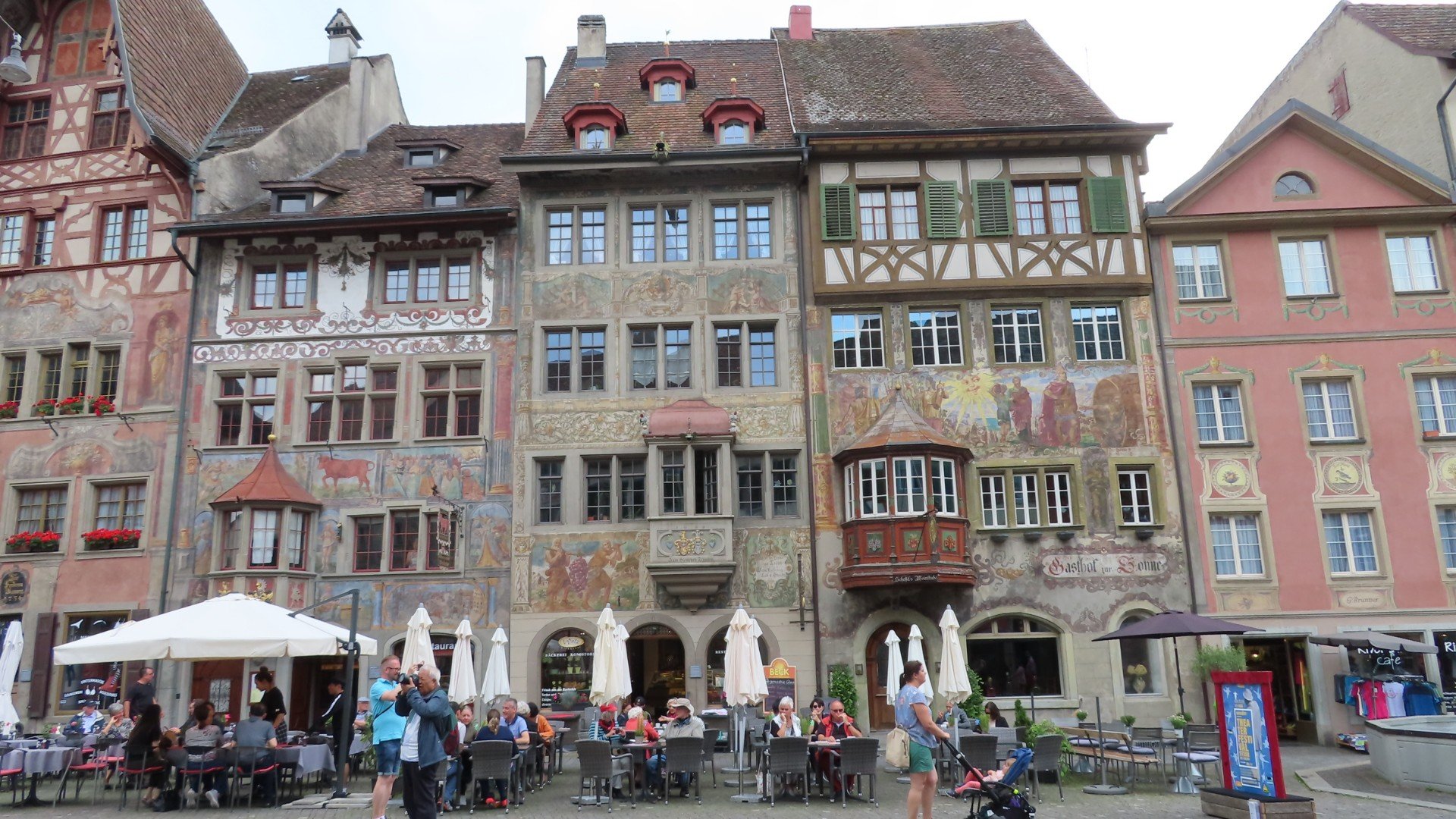 Rafz: Gasthaus SternenRheinau: KlosterkircheRheinau: RheinbruckeSchaffhausen: RheinfallSchaffhausen: RheinfallSchaffhausen: Onder het spoor door. Er is een list 😉DiesenhofenStein am Rhein: UndertorStein am RheinStein am RheinStein am Rhein