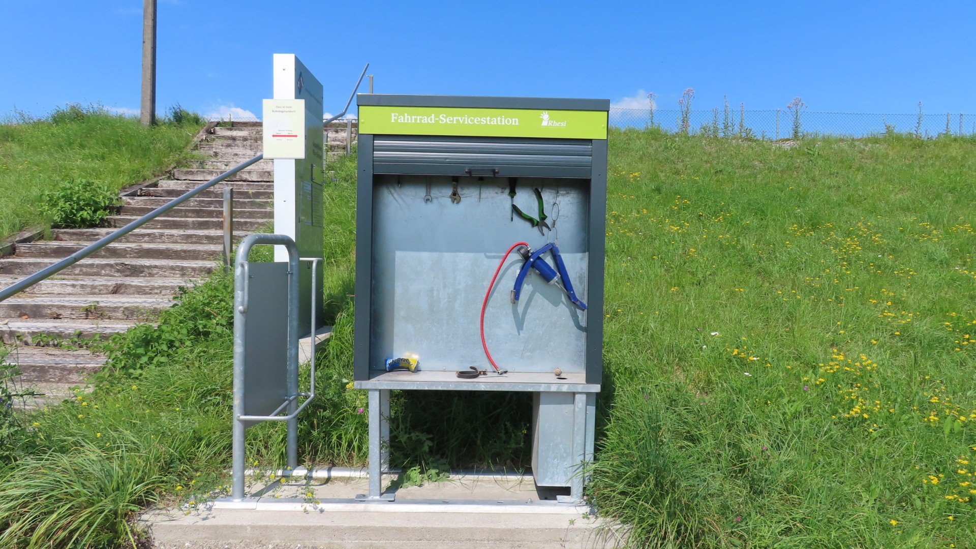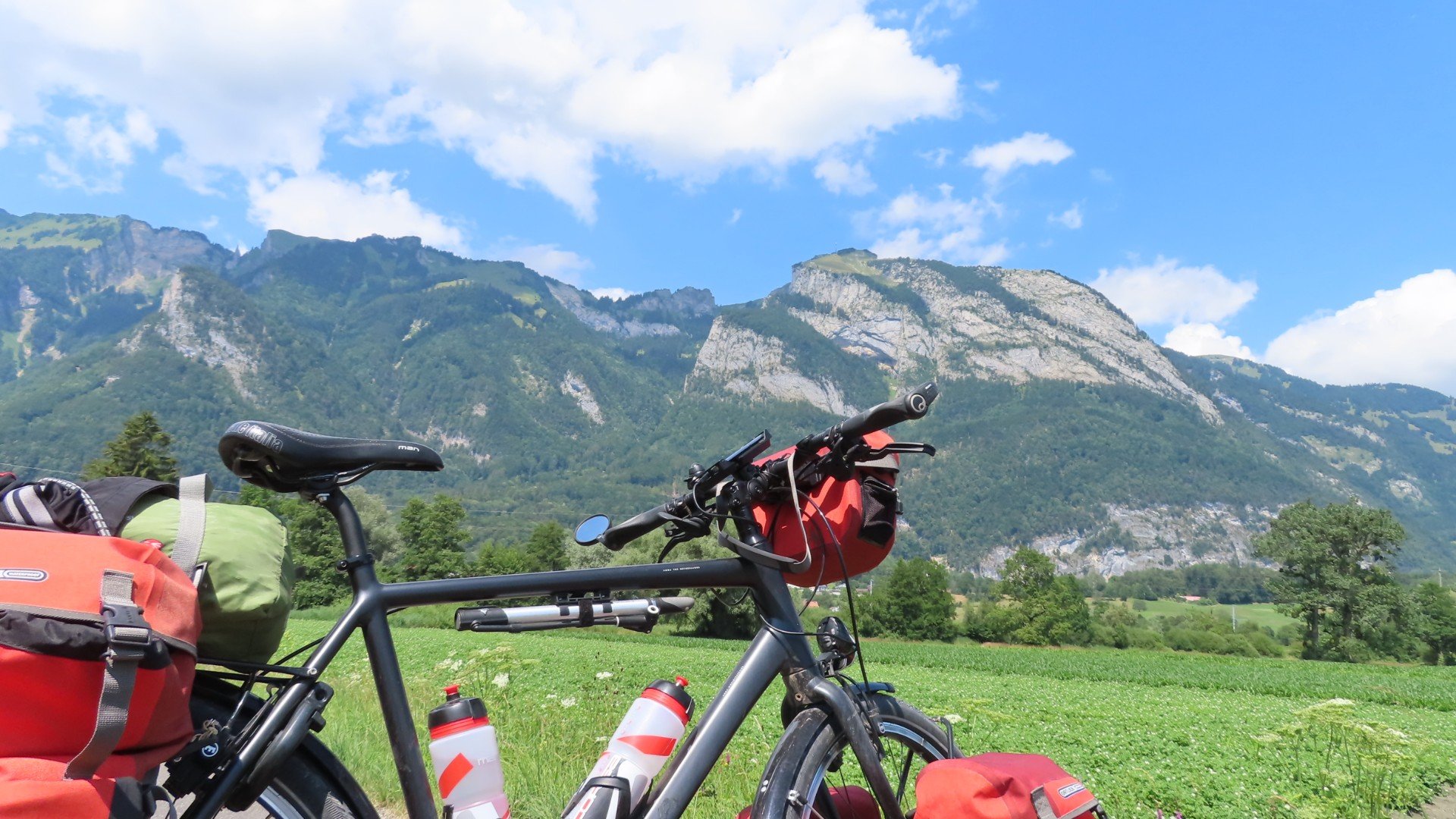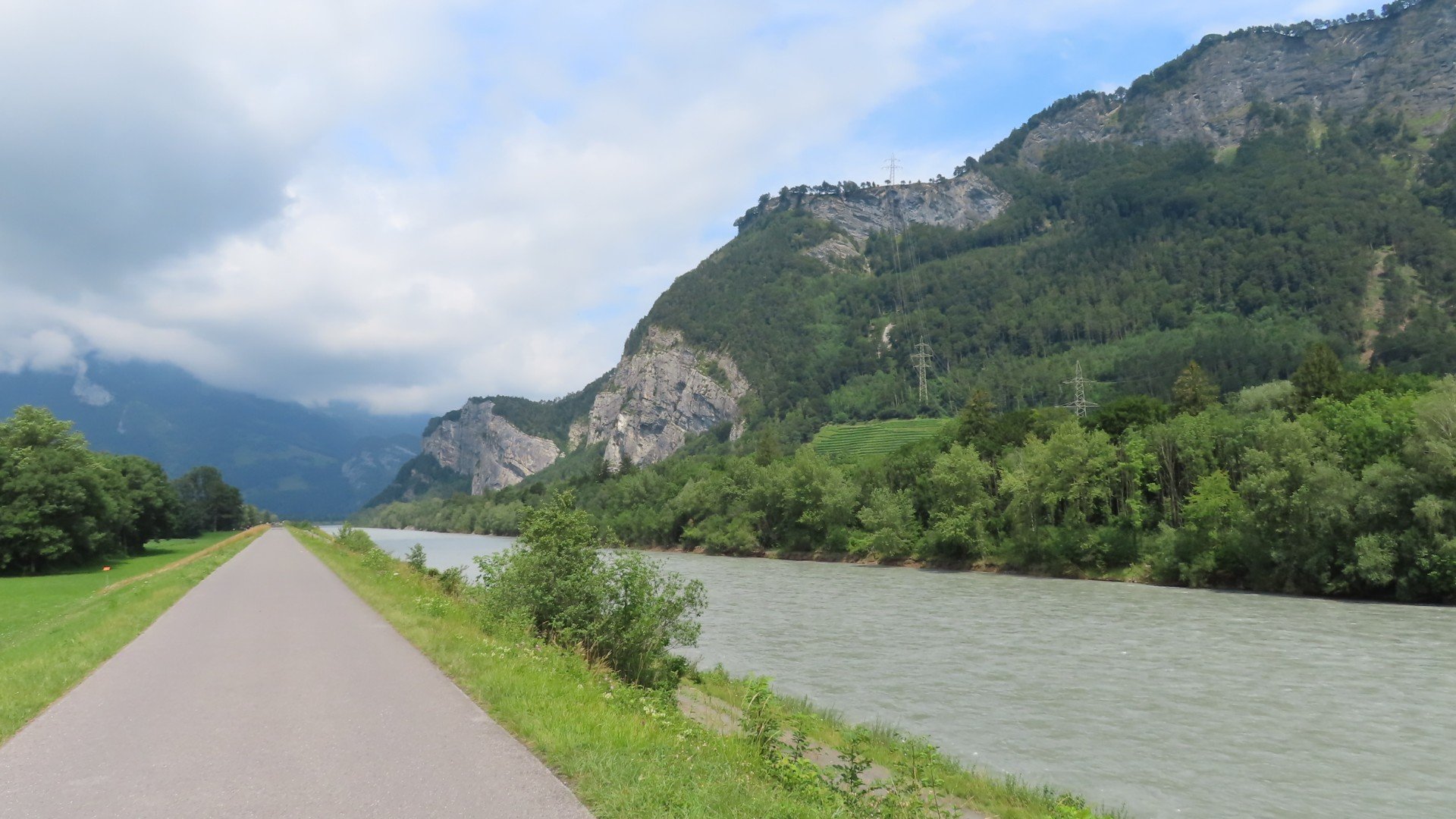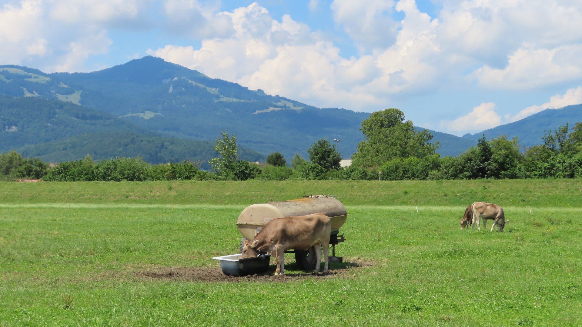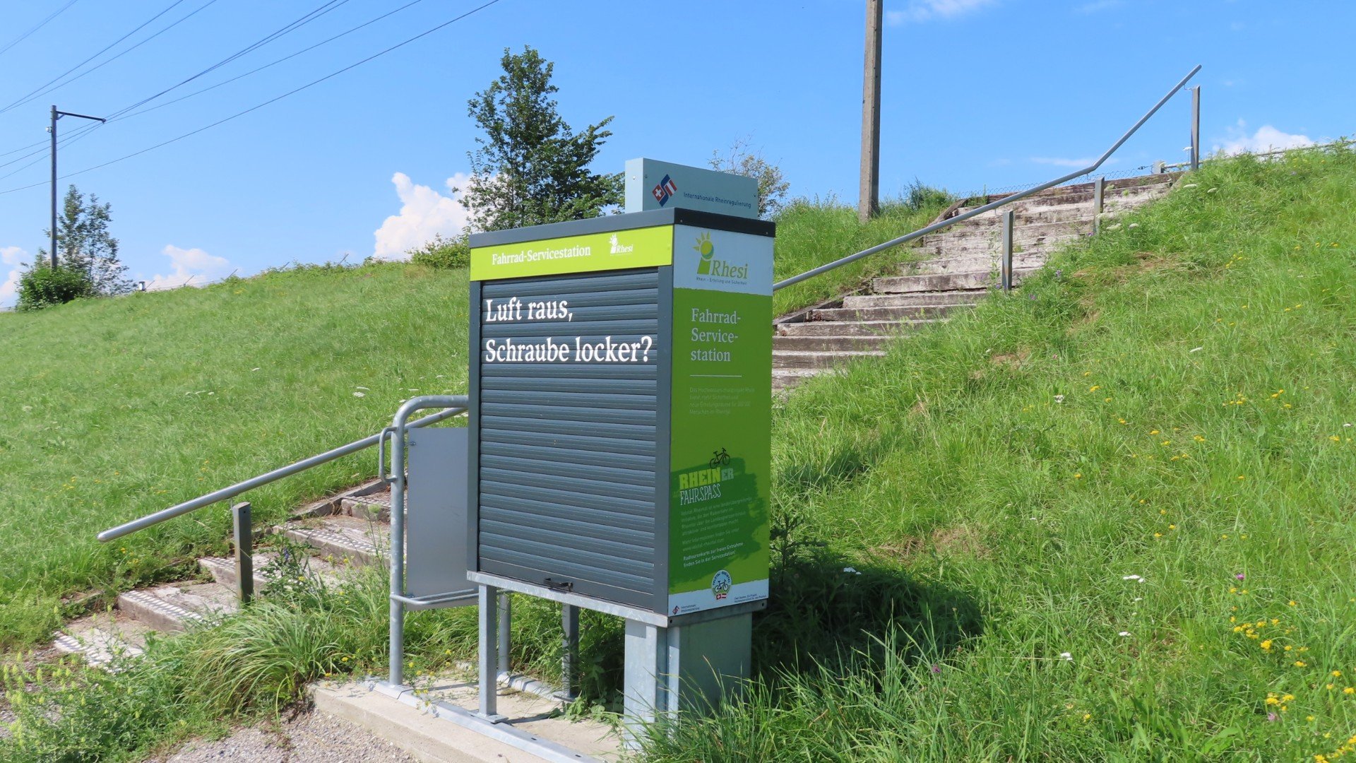 Rheindorf: In de verte de eerste bergenDiepoldsau: Een fiets service stationDiepoldsau: Een fiets service stationLunchen langs de RijnMontlingen: Het is warm. Ook de koeien hebben dorstBuchs: Schloss Werdenberg