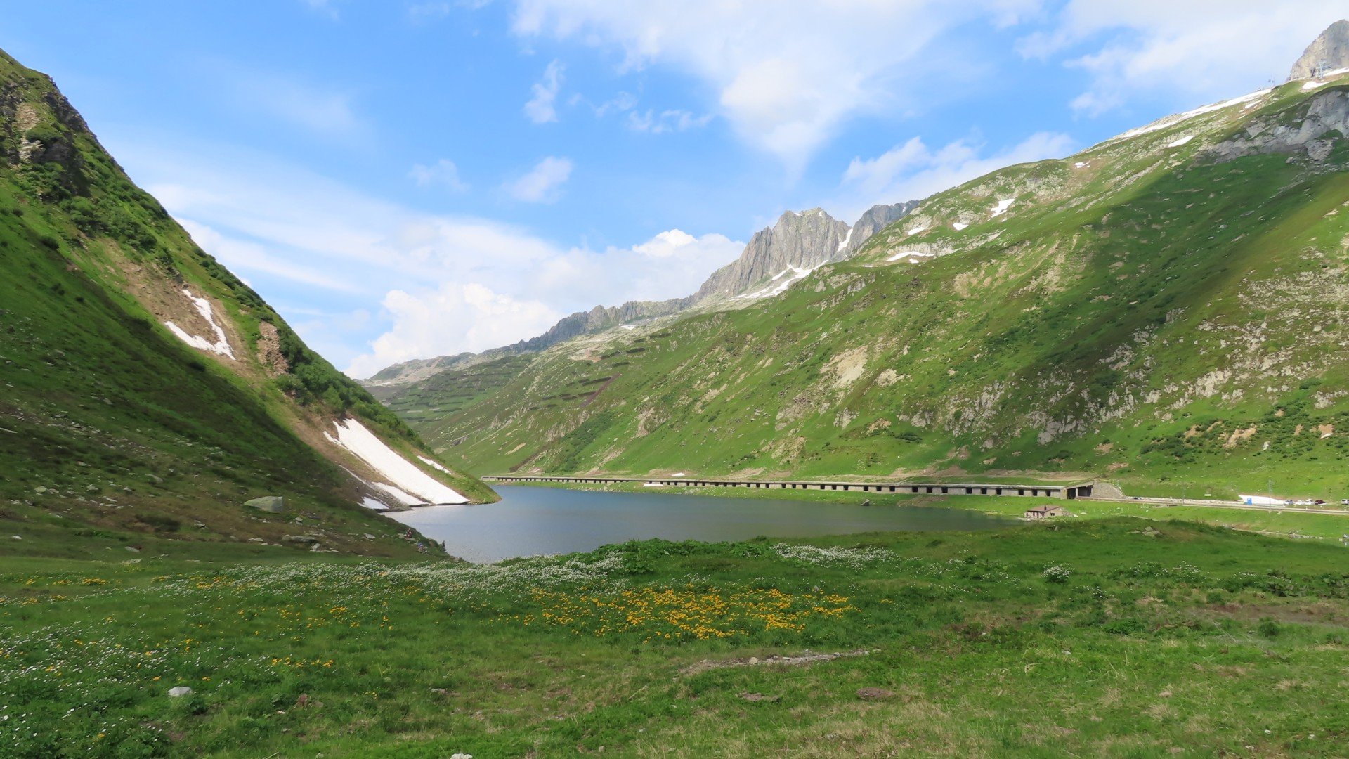 Top gehaald (2046m)Klimmen naar de OberalppassKlimmen naar de OberalppassOberalppass: VuurtorenOberalpseeEr ligt nog sneeuwEen laatste blik op de OberalpseeAfdaling naar (in de verte) Andermatt