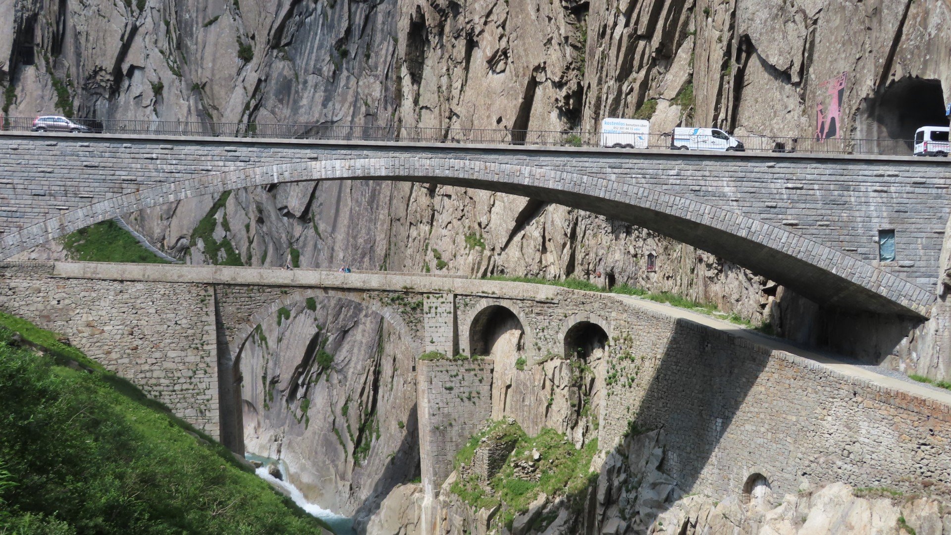 Andermatt: TreinstationAndermatt: Hotel Sur SonneAndermatt: Teufel mit eine FluteAndermattAndermatt: TeufelsbruckeDe weg naar GoschenAndermatt: Bergbeklimmers