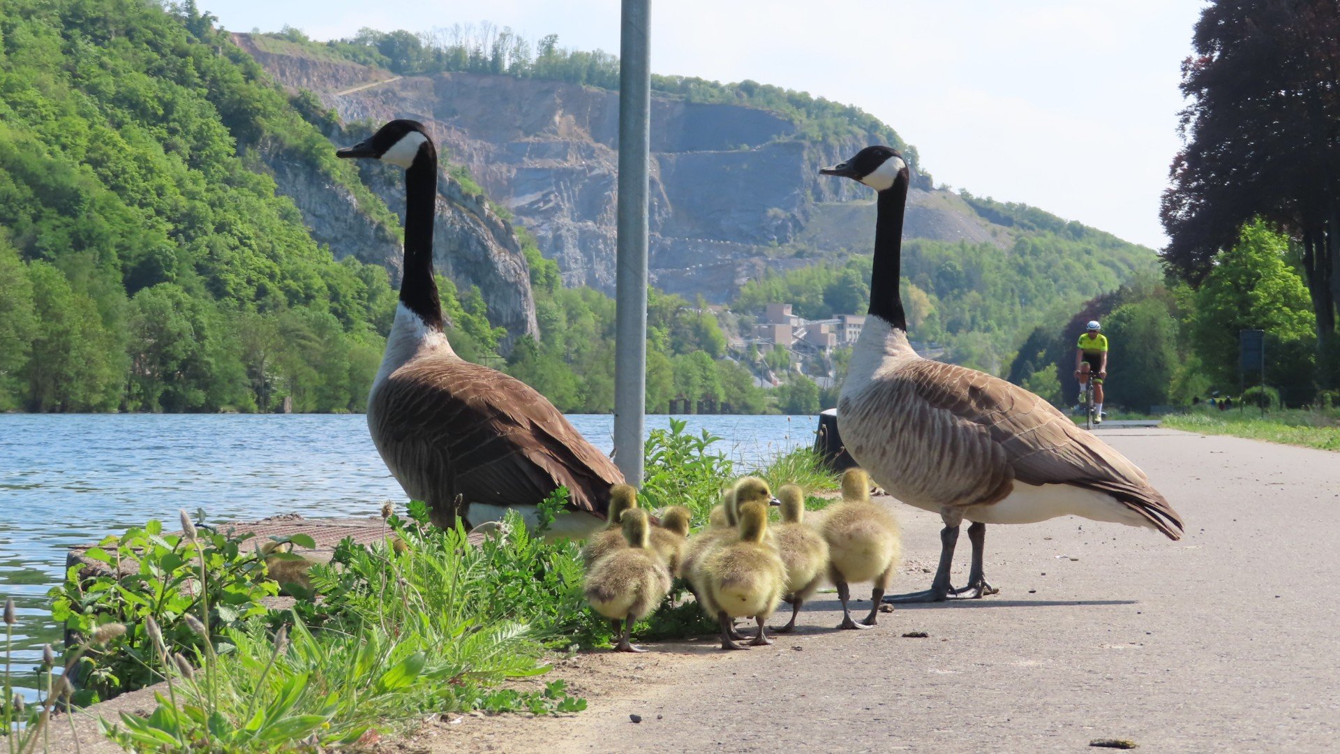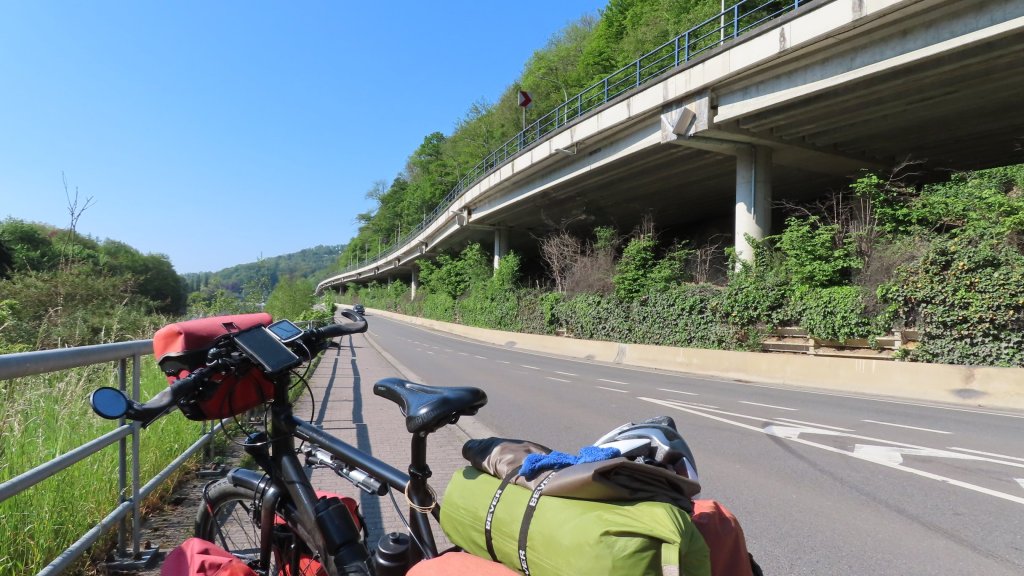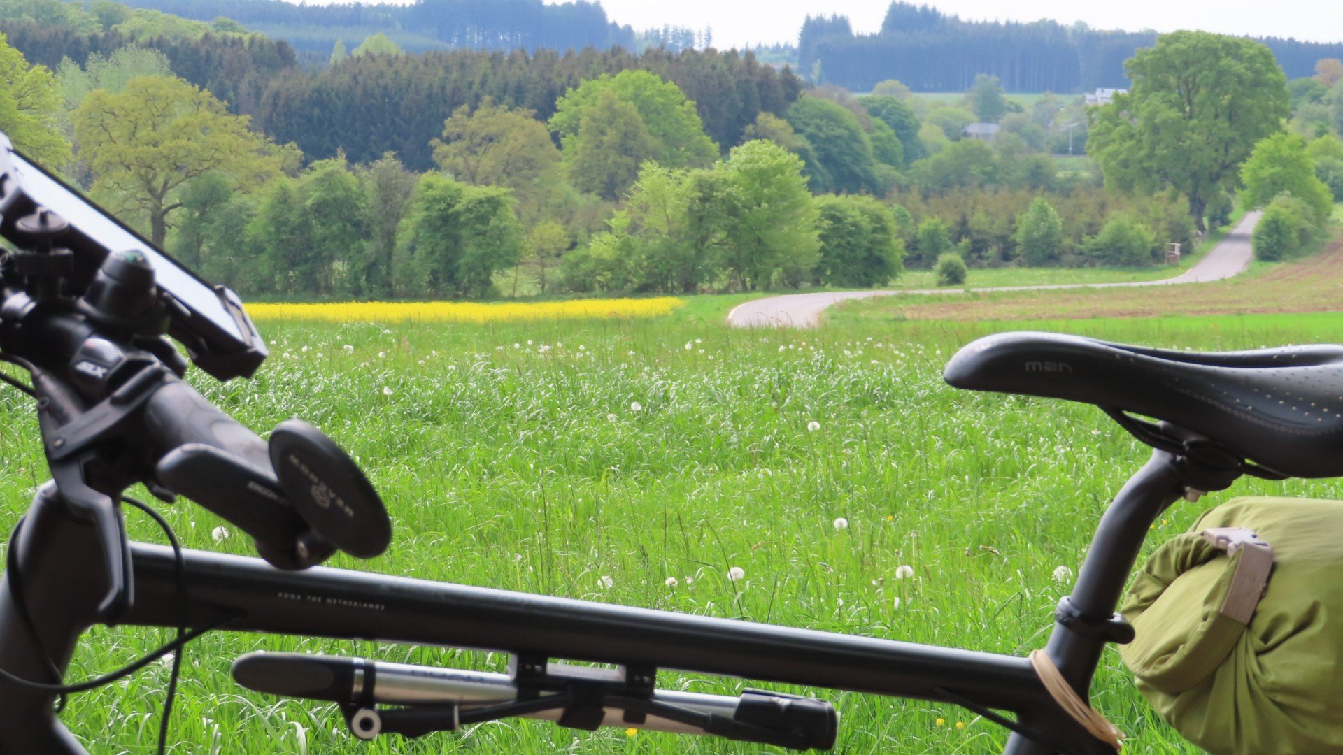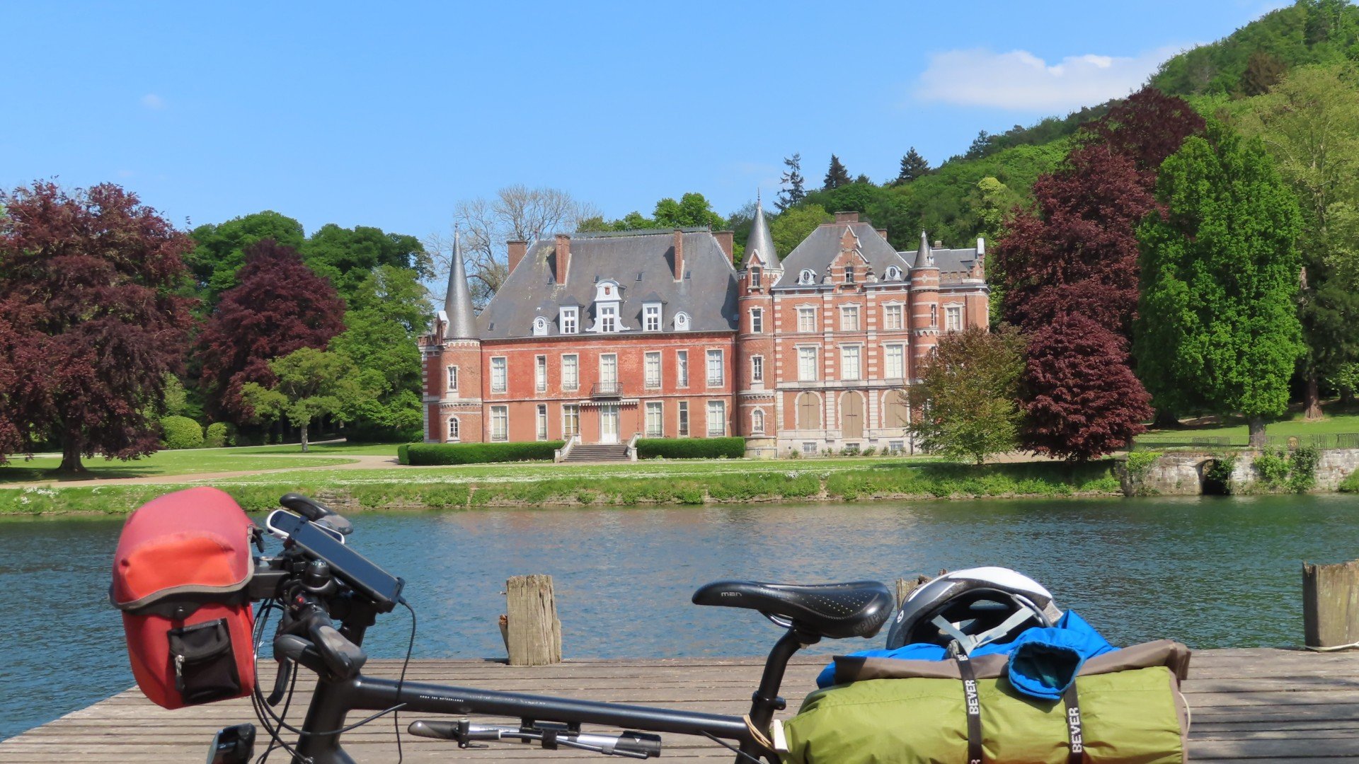 Profondefille: Rijstroken niet naast elkaar, maar boven elkaarHoux: Omleiding richting Dinant Dinant: Links boven citadel van DinantEven na Dinant: Maasroute gaat rechtsaf, ik ga nu linksafRichting Walzin: Bruggetje over de LesseFurfooz: Een filmploeg in actie Furfooz: Koolzaad veldenKoolzaadFurfooz: Gewoon maar een boerderij Veves: Chateau de VevesSanzinnes: 2 km afdalen, maar gevaarlijk Houyet: Tunnel de Hour (500m)Ave et Auffe: Camping Roptai (Euro 11,50)