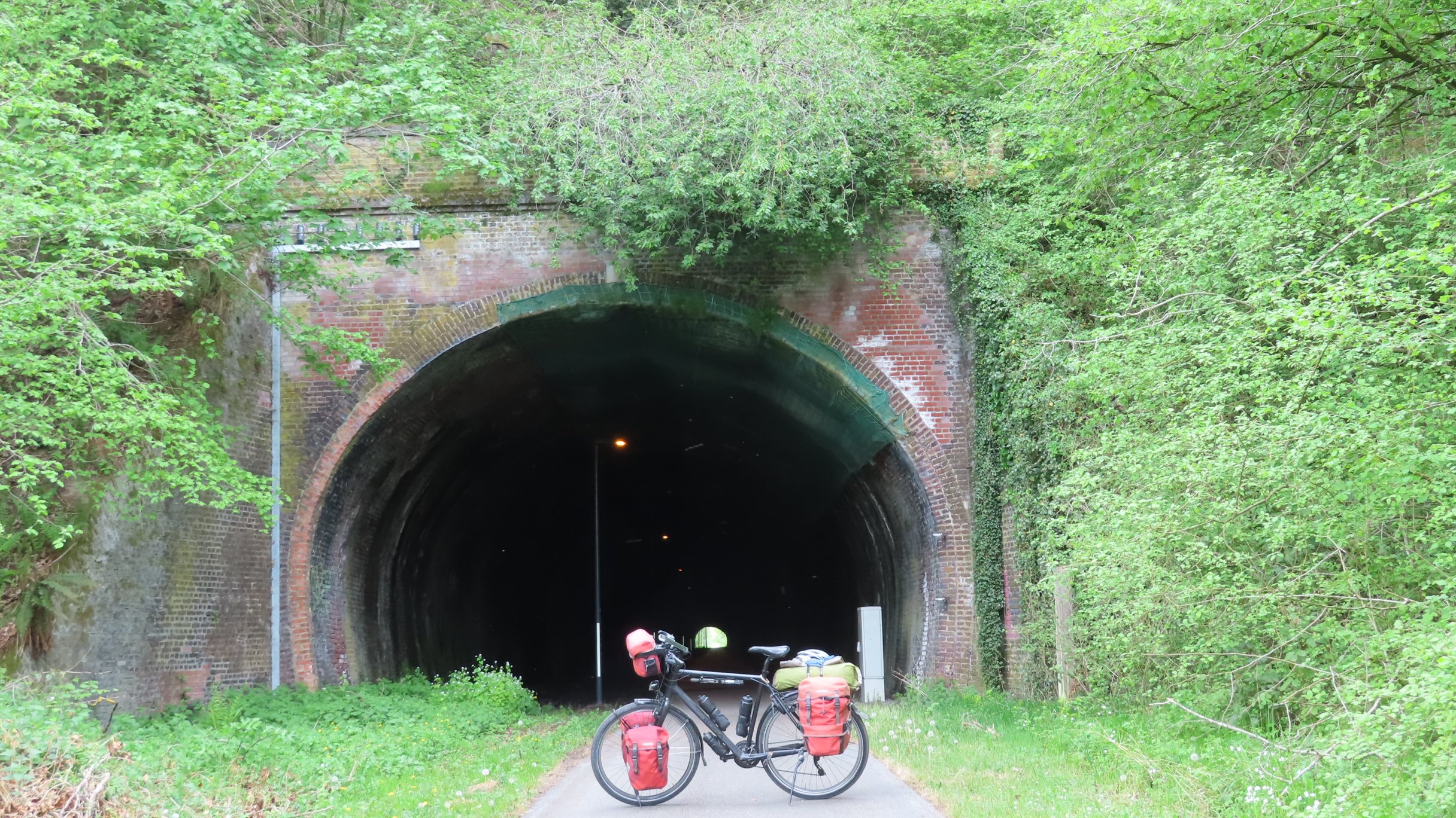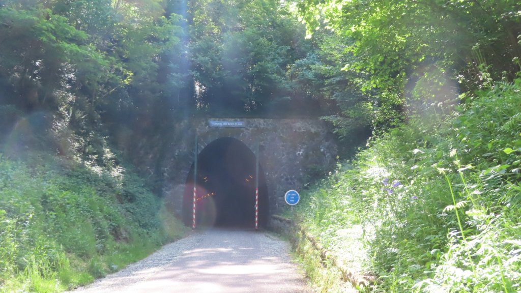 Onder weg door Tunnel du Bais ClairIn de tunnel (1,7km lang)Landschap onderwegSoms steile hellingenEen kasteelCluny: Noch even langs Abbaye de ClunyCluny: Uitzicht op Abbaye de Cluny vanaf de campingHeenTerug