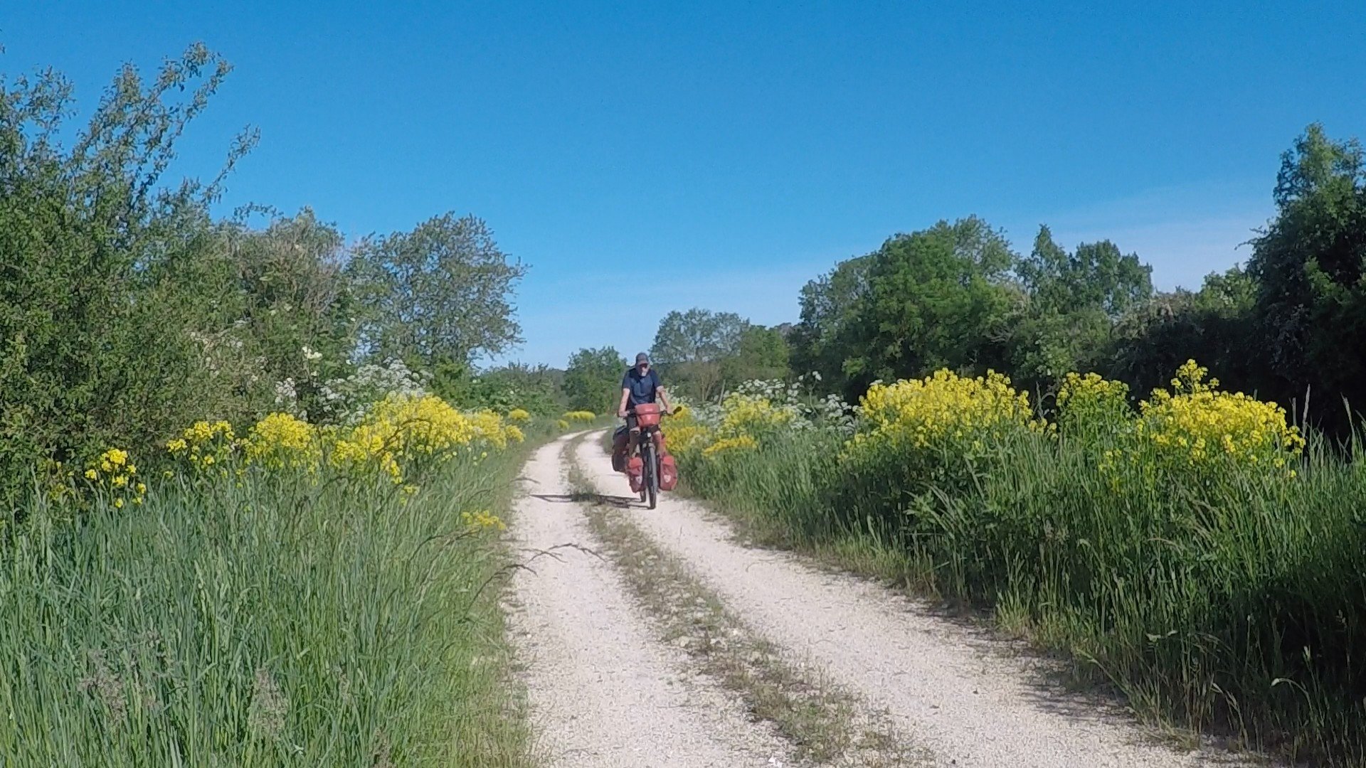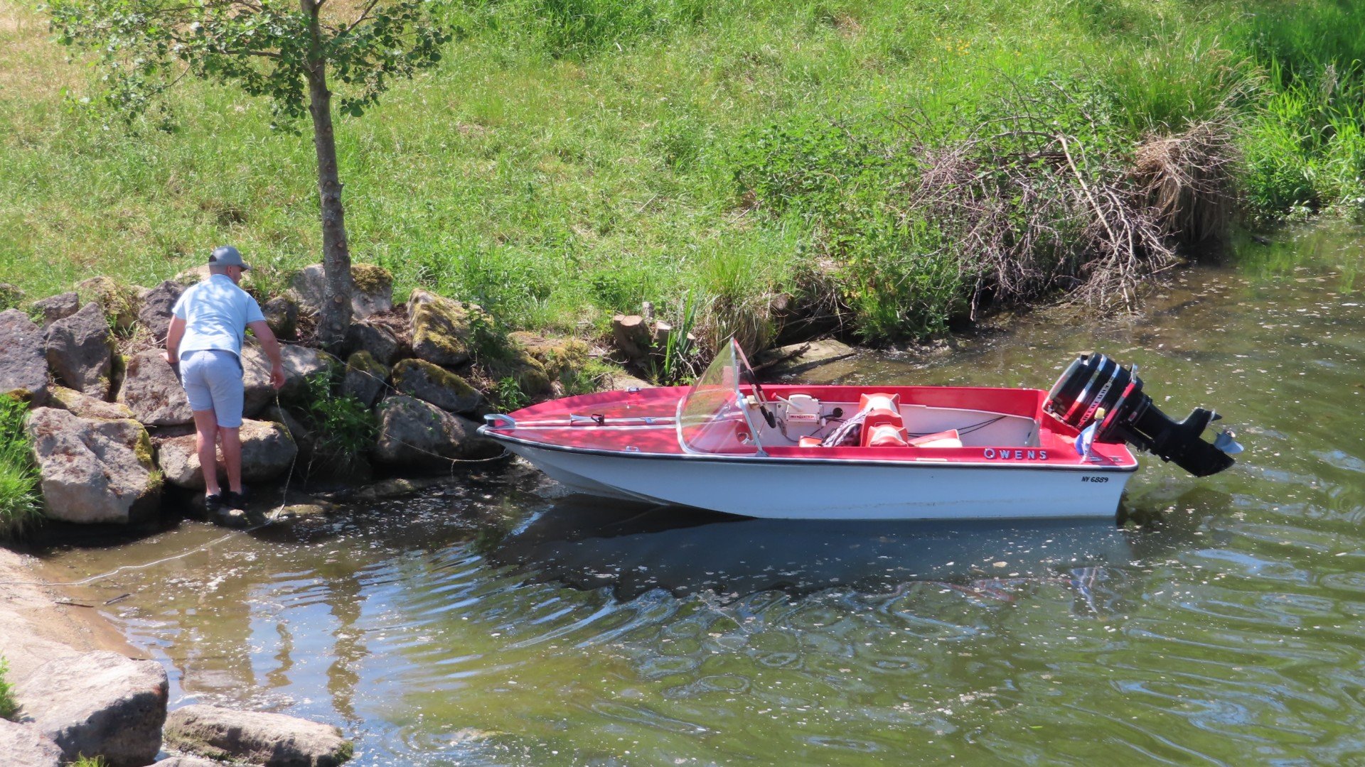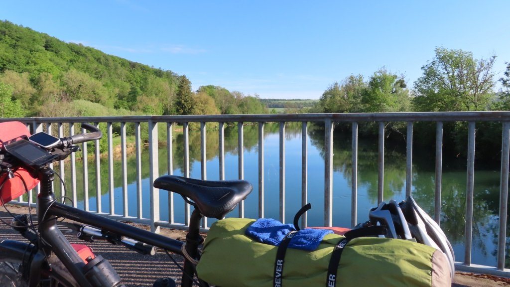 Heudicort: Laatste blik op het Lac de MadineLac de Madine nog een keer, maar nu met koeienBoucq: Even uitrusten in de schaduwRustige weg richting ToulLagney: Even uitrusten voor de lunchBruggetje bij Villey le Sec over de MoselleMan met kleine speedbootVilley le Sec: Camping Villey le Sec (Euro 12,40)