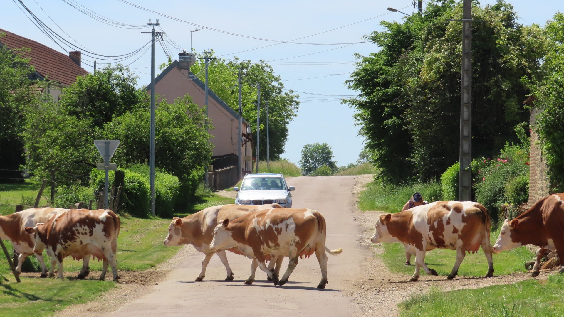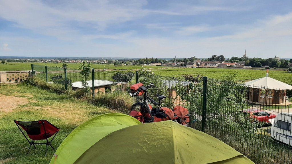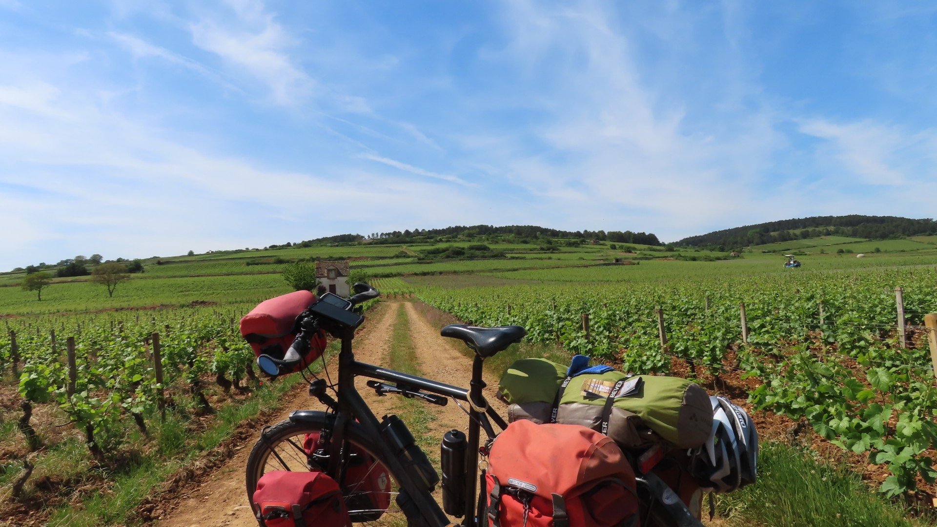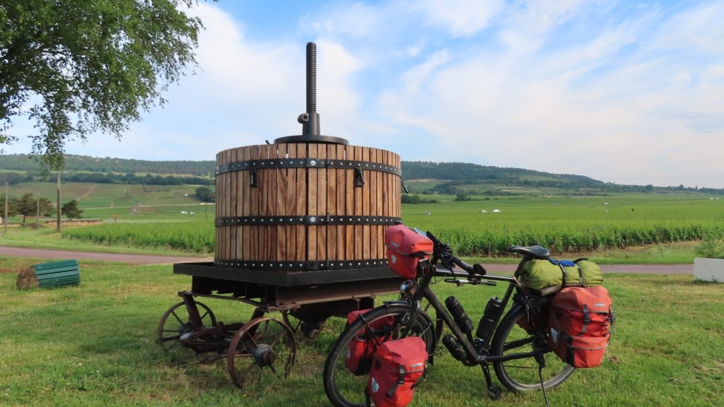 Pontailler: Franse vogelverschrikker Snelweg 39: Snel weg van/naar DijonDe weg naar Tart le BasMeertjeAiserey: Omleiding ook voor fietsersCiteaux: Notre Dame de CiteauxVandaag om 13:05 de 1000ste km gefietsSandwich pouletArgilly: Koeien steken de weg overBeaune: Standbeeld op Place MongeBeaune: Hospices de BeauneHetzelfde De ziekenkamerBeaune: Een paar meter buiten Beaune beginnen de wijngaarden De weg naar de camping van vandaagMeursault: Camping (Euro 20,60)