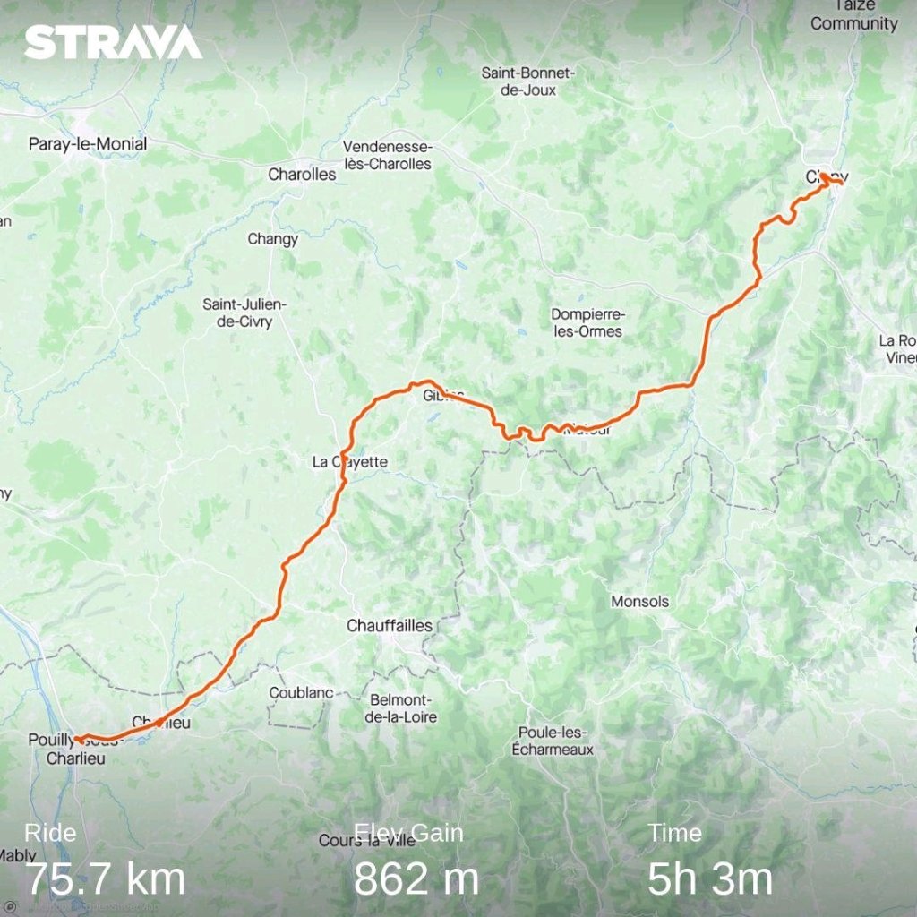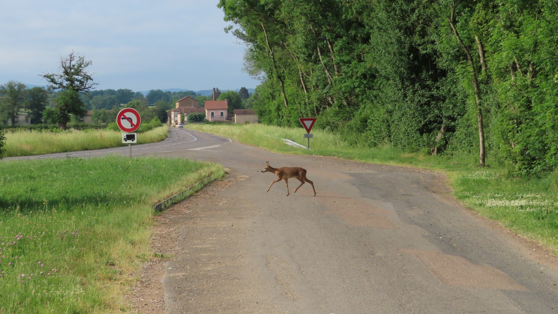 Cluny: Het is nog vroeg in de ochtend als we Cluny verlatenJalognyBosquetOp parkeerplaats. Ree heeft na enkele pogingen toch de weg kunnen overstekenIets voor MatourNiet hoog, maar wel de eerste col met een naamRichting La Clayette via CrouxBois Sante MarieOp de achtergrond Bois Sante MarieLa Clayette: Chateau de La ClayetteChateauneufOnderweg naar PouillyPouilly sous Charlieu: Camping (Euro 8,20)