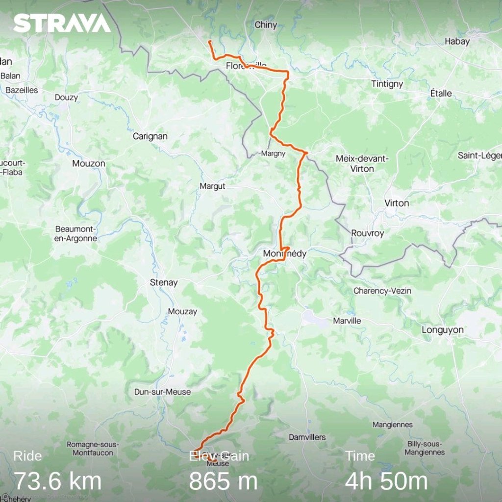 We verlaten het dorpje ChassepierrePin: 13%… AfdalingDoor het bos van Pin naar OrvalMet hoge snelheid door het bos naar Orval. Oppassen soms wegdek heel slechtOrval: Ingang Abbaye Notre DameOrval: Eventjes naar binnen en door fietsenFagny: Oude frans doaunekantoor. We zijn in FrankrijkFagny: BoerderijAvioth: Basilique Notre DameAvioth: Mijn fietsErgens onderweg Onderweg naar MontmadyThonne-Les-PresMontmedyMontmedy: Buurtsuper is nog dichtMontmedyEven na Montmedy een straatje naar LouppyLouppy-sur-LoisonBrandevilleSivry sur Meuse: Camping Le Brouzel (Euro 8,30)