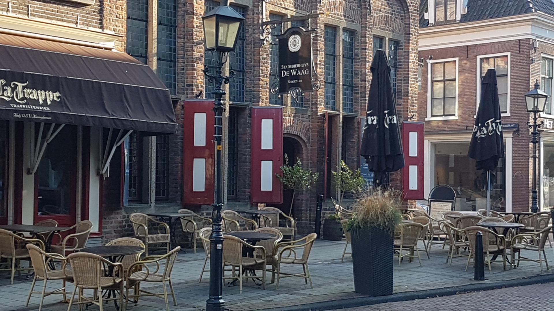In Doesburg (over de kasseien) langs restaurant de Waag. Het is helemaal leeg. Niet zo gek, want het is nog vroeg en het is nog steeds een beetje koud. Als ik over de IJsselkade fiets, zijn oudere mensen, voor het appartement, het plantsoen aan het schoonmaken. Het blijkt dat ze dit vrijwillig doen. Elke donderdag samen met andere bewoners van het appartement. Dus geen onderhoud door de gemeente.